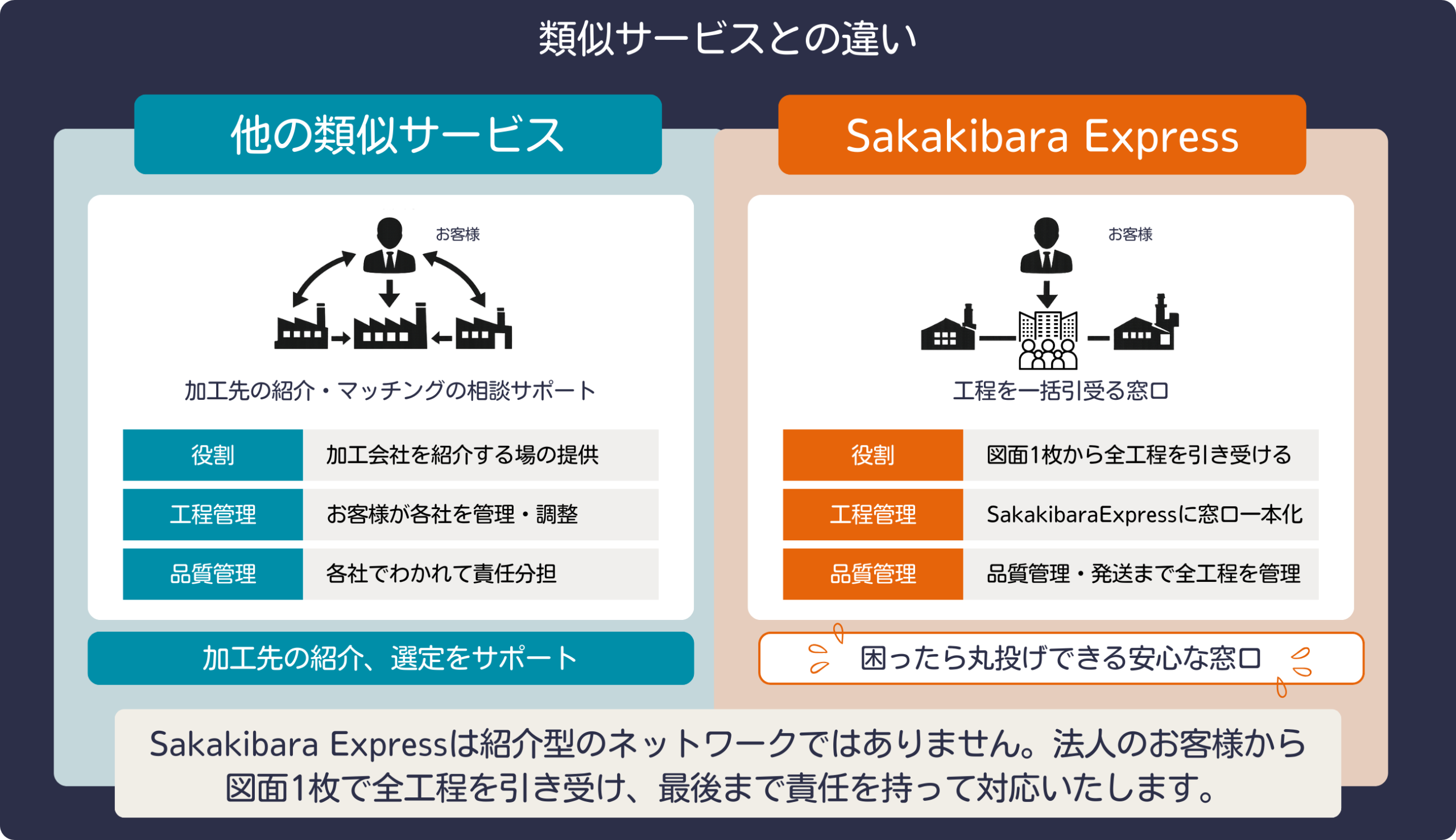 指示・確認・調整はすべてSakakibara Expressが行います。 - 実績ある「ものづくりネットワーク」がすぐに利用可能